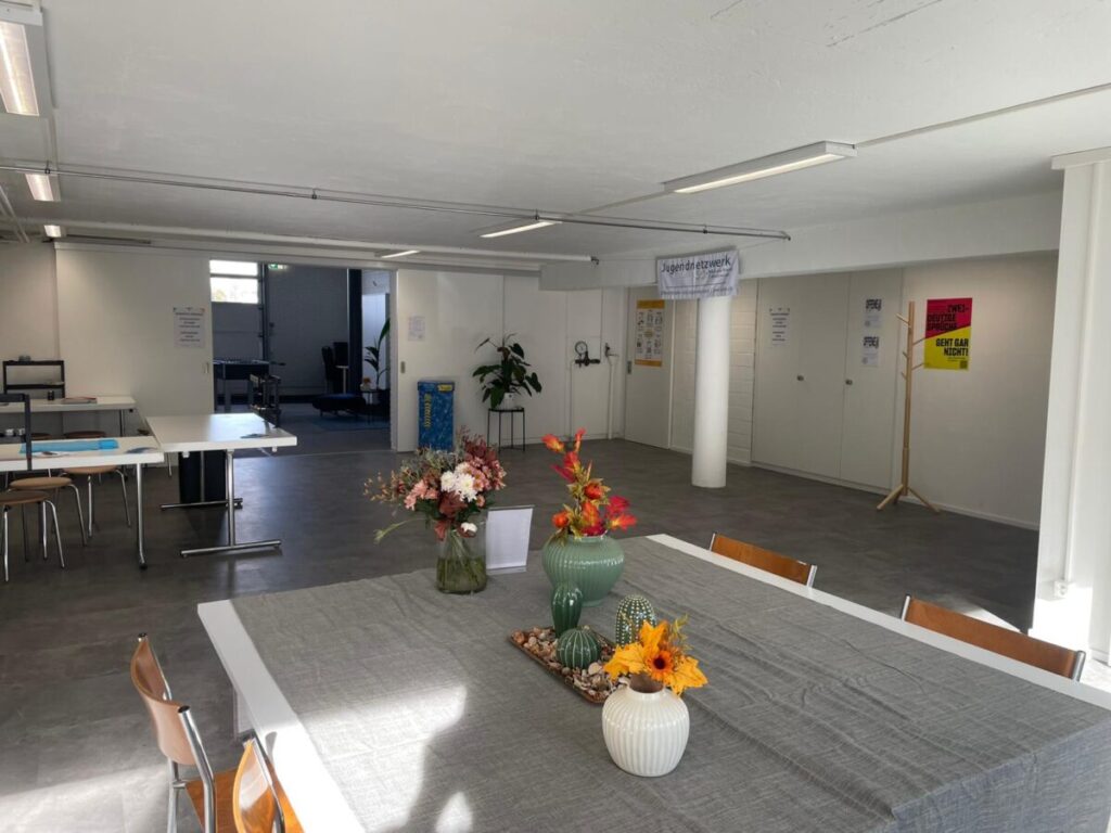 Das Lokal mit Barbereich, Küche und einer professionell ausgestatteten Bühne, eignet sich für kleine Anlässe und für grössere Veranstaltungen. Der Makerspace bietet Platz und moderne Infrastruktur für Projektarbeiten, Workshops und Sitzungen. Der Mädchenraum bietet dir Rückzugsmöglichkeiten mit deinen Freundinnen.